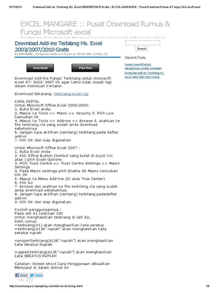 Download Terbilang / Rumus Terbilang Excel Manual Lengkap Versi 2007, 2010 ... - Ketik nominal rupiah yang anda kehendaki pada cell tertentu.. Namun jangan khawatir untuk versi lain cara nya kurang lebih sama dan. Terimakasih….file terbilang23.xla dapat di download di downloadbox. Fungsi terbilang excel | download add ins dan file contohfungsi terbilang excel begitu membantu pengolahan angka dalam jumlah besar. It is possible to download/install these versions. Aplikasi terbilang ada 4 pilihan bahasa, yaitu bahasa indonesia, bahasa arab, bahasa inggris, dan bahasa perancis.