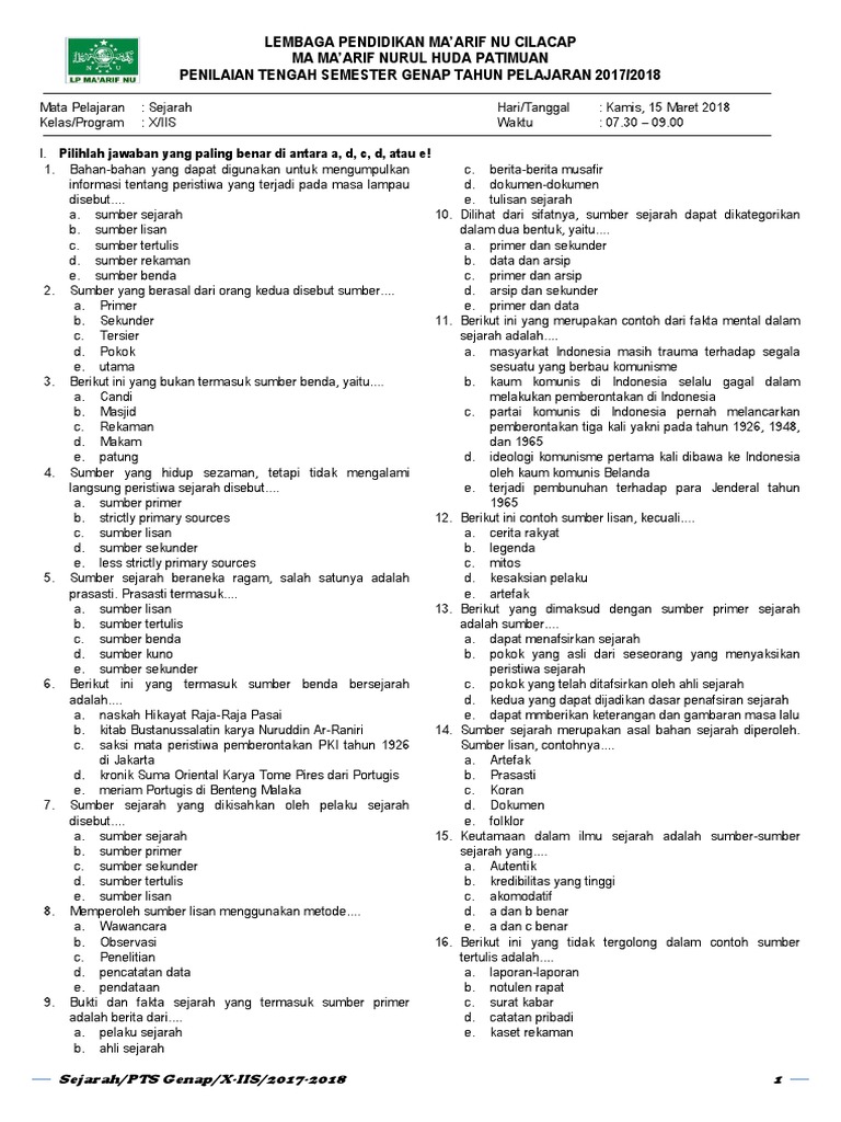 Adanya jiwa dan semangat gotong royong, solidaritas dan toleransi keagamaan yang kuat. Pada postingan saya kali ini, saya membagikan latihan pat sejarah peminatan kelas 10 yang terdiri dari 30 soal pilihan ganda. Uh sejarah peminatan kelas x corak kehidupan manusia purba. Home » contoh soal a » kelas 10 » contoh soal pkn kelas 10 semester 2. Memenuhi fungsi sebagai karya seni c.